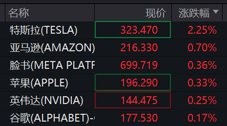 美股科技七巨头多数上涨恒盛策略。特斯拉涨超2%。